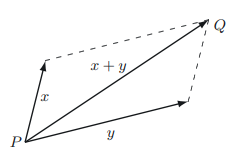 - 합(sum)은 V의 두 원소 x, y에 대하여 유일한 원소 x + y ∈ V를 대응하는 연산이다.