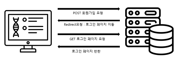post(회원가입 정보) -> redirect(로그인 페이지) -> get(페이지 반환)