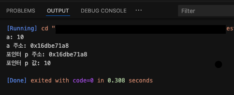 printf("포인터 p가 가리키는 값: %d\n", *p);